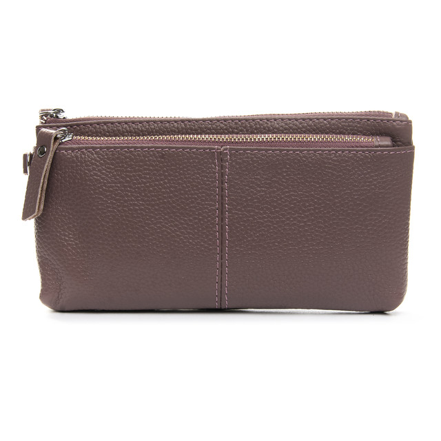 Жіночий шкіряний гаманець-косметичка. Одне основне відділення з кишенею, закривається на блискавку. На фасаді і зворотному боці є великі кишені на блискавці. У комплекті є ремінець на зап'ясток. Розмір (см.) 20 * 10 * 3